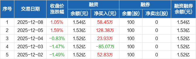 金春股份:连续3日融资净买入累计210.76万元(12-08)
