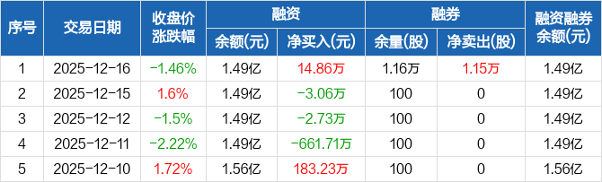 金春股份:融资净买入14.86万元,融资余额1.49亿元(12-16)