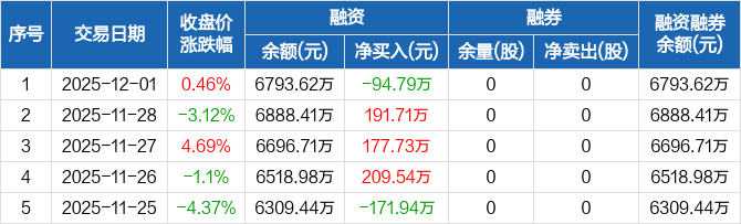 维康药业:融资净偿还94.79万元,融资余额6793.62万元(12-01)