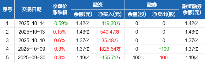 龙利得:融资净偿还119.3万元,融资余额1.42亿元(10-14)