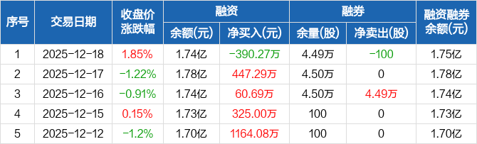 龙利得:融资净偿还390.27万元,融资余额1.74亿元(12-18)