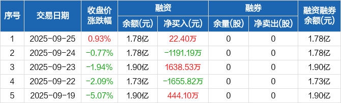 海昌新材:融资净买入22.4万元,融资余额1.78亿元(09-25)