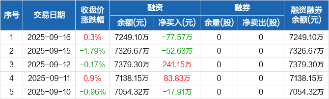华业香料:融资净偿还77.57万元,融资余额7249.1万元(09-16)