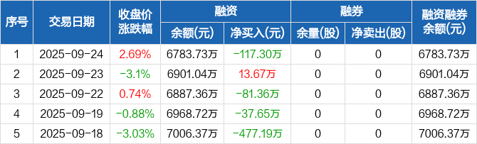 华业香料:融资净偿还117.3万元,融资余额6783.73万元(09-24)