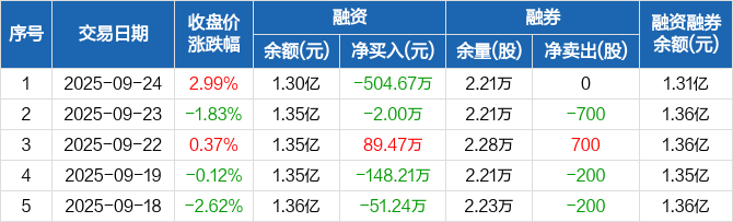 谱尼测试:融资净偿还504.67万元,融资余额1.3亿元(09-24)