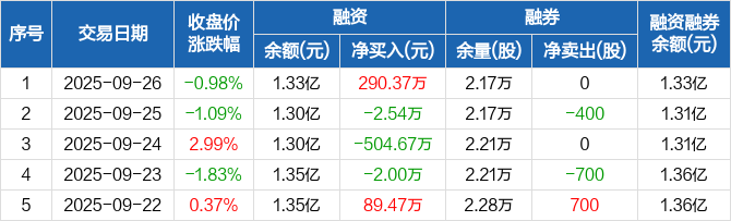 谱尼测试:融资净买入290.37万元,融资余额1.33亿元(09-26)