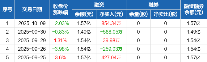 爱克股份:融资净买入854.34万元,融资余额1.57亿元(10-09)
