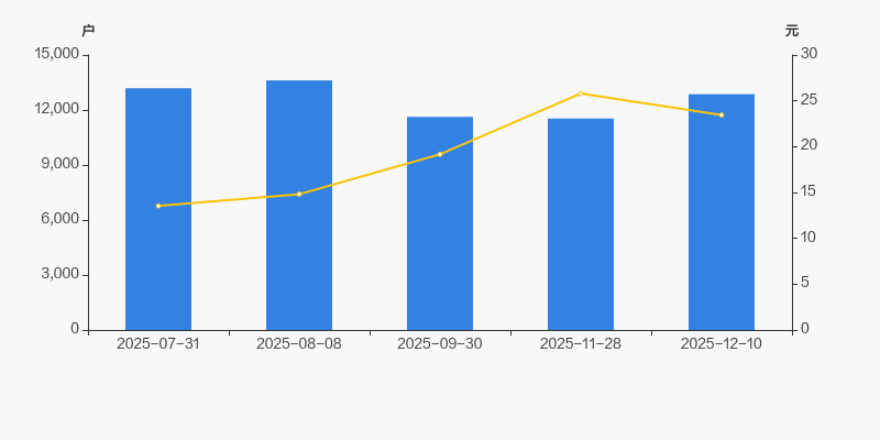 截至2025年12月10日,公司最新总股本为2.2亿股,其中流通股本为1.46亿股。户均持有流通股数量由上期的1.27万股下降至1.14万股,户均流通市值26.68万元。