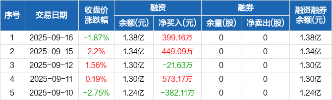 惠云钛业:融资净买入399.16万元,融资余额1.38亿元(09-16)