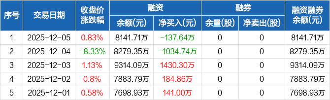 品渥食品:融资净偿还137.64万元,融资余额8141.71万元(12-05)