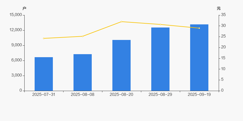 自2025年7月31日以来,公司股东户数连续4期上涨,截至目前增幅为97.66%。2025年7月31日至2025年9月19日区间股价上涨19.51%。