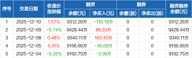 松原安全:融资净偿还116.18万元,融资余额9312.26万元(12-10)