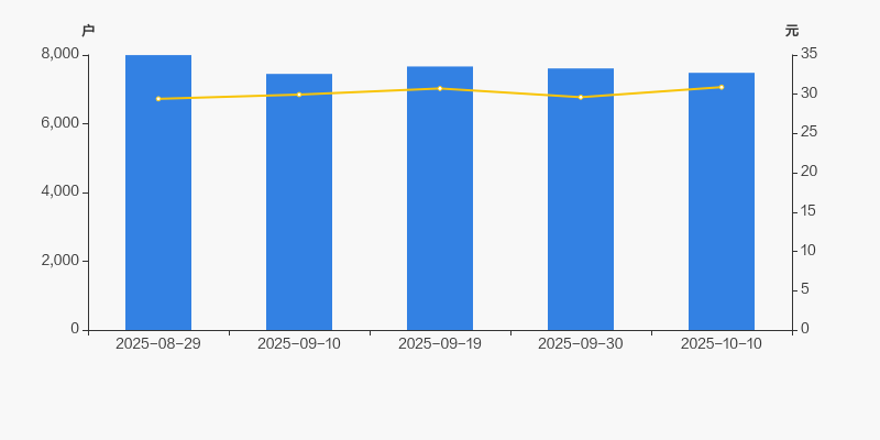 2025年8月29日至今,公司股东户数有所下降,区间跌幅为6.44%。2025年8月29日至2025年10月10日区间股价上涨5.06%。