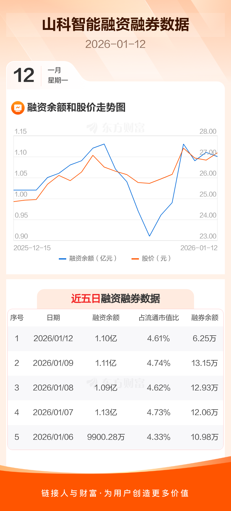 交易所最新数据显示,山科智能于2026年1月12日获融资买入703.21万元,融资偿还862.80万元,当日融资净偿还159.6万元。目前,该股融资余额1.10亿,占流通市值比例为4.61%。