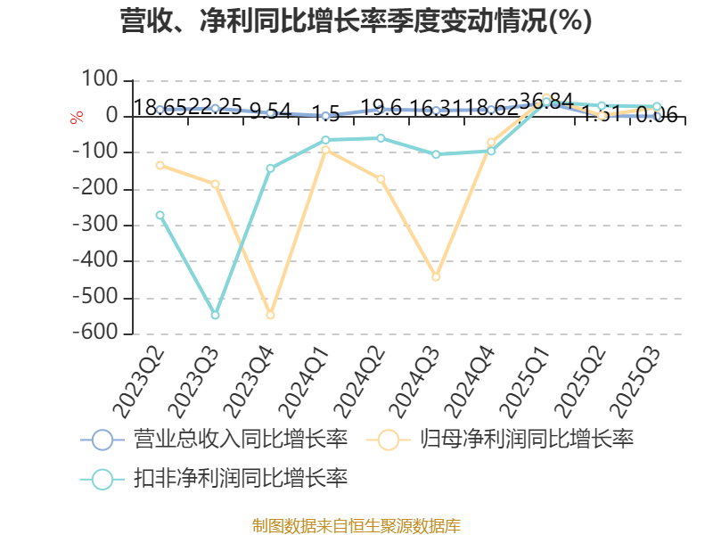 2025年前三季度,公司经营活动现金流净额为9896.14万元,同比增加2.2亿元;筹资活动现金流净额-2.6亿元,同比减少5.56亿元;投资活动现金流净额-2.31亿元,上年同期为-1.33亿元。