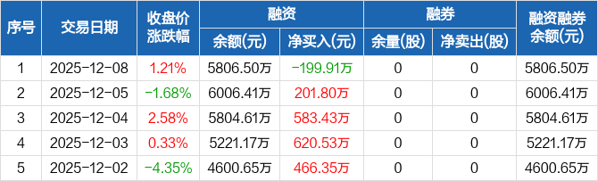 威力传动:融资净偿还199.91万元,融资余额5806.5万元(12-08)
