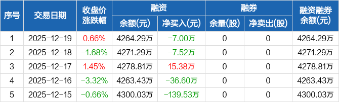 威力传动:融资净偿还7万元,融资余额4264.29万元(12-19)