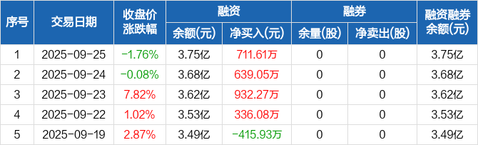 宝丽迪:融资余额3.75亿元,创历史新高(09-25)