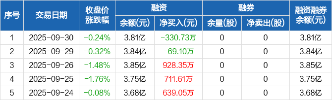 宝丽迪:融资净偿还330.73万元,融资余额3.81亿元(09-30)