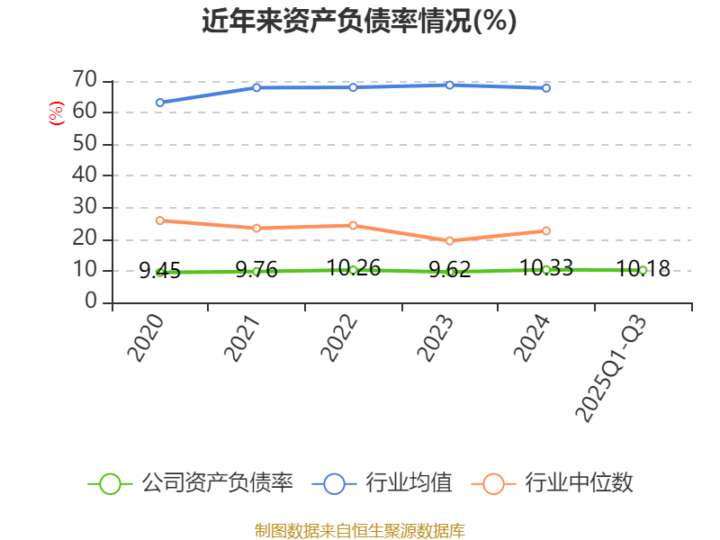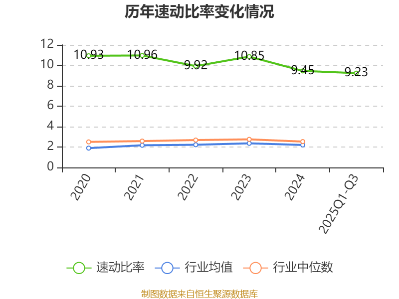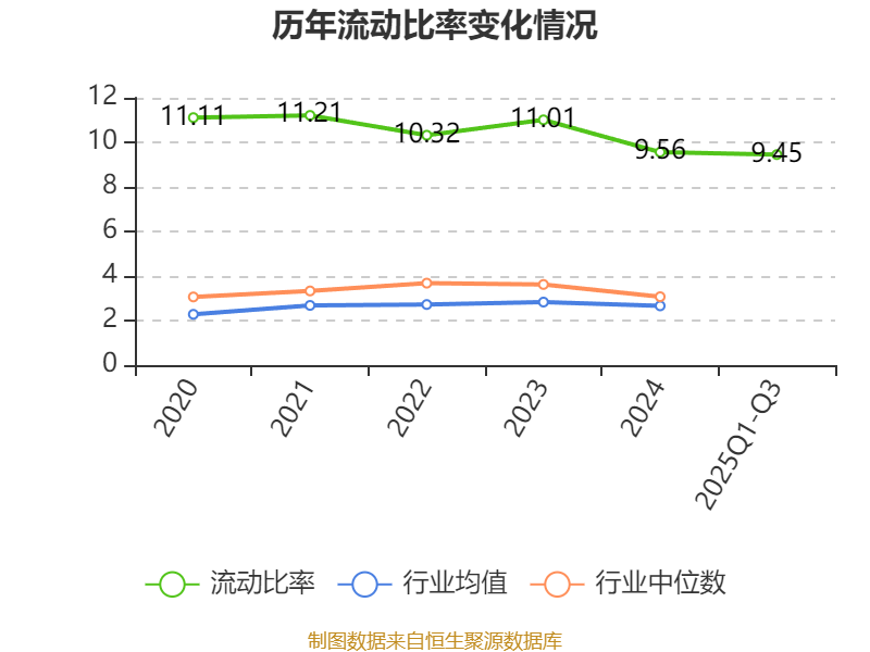 2025年前三季度,公司流动比率为9.45,速动比率为9.23。
