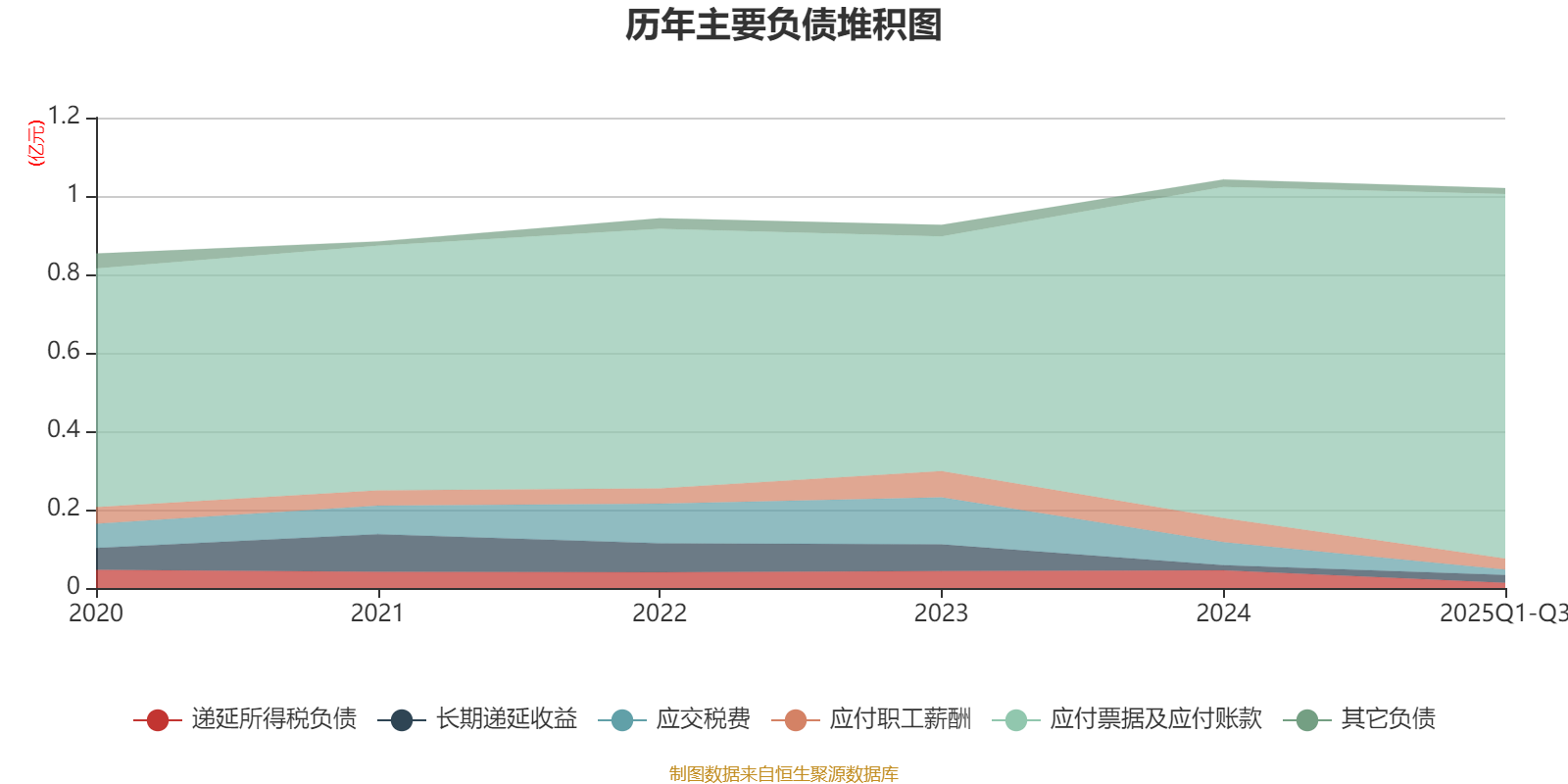 负债重大变化方面,截至2025年三季度末,公司应付票据及应付账款较上年末增加10.16%,占公司总资产比重上升0.9个百分点;应交税费较上年末减少76.84%,占公司总资产比重下降0.45个百分点;应付职工薪酬较上年末减少54.82%,占公司总资产比重下降0.33个百分点;递延所得税负债较上年末减少70.12%,占公司总资产比重下降0.31个百分点。