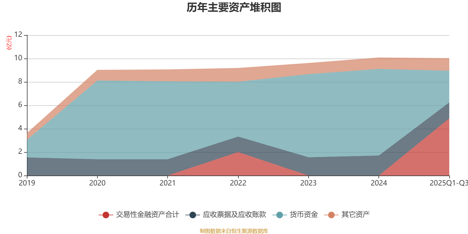 资产重大变化方面,截至2025年三季度末,公司交易性金融资产合计占公司总资产的48.73%,上年末为0;货币资金较上年末减少63.32%,占公司总资产比重下降46.3个百分点;应收票据及应收账款较上年末减少20.56%,占公司总资产比重下降3.4个百分点;存货较上年末增加100.75%,占公司总资产比重上升1.06个百分点。