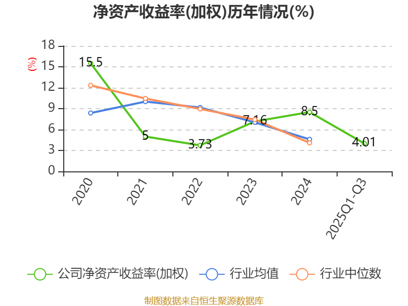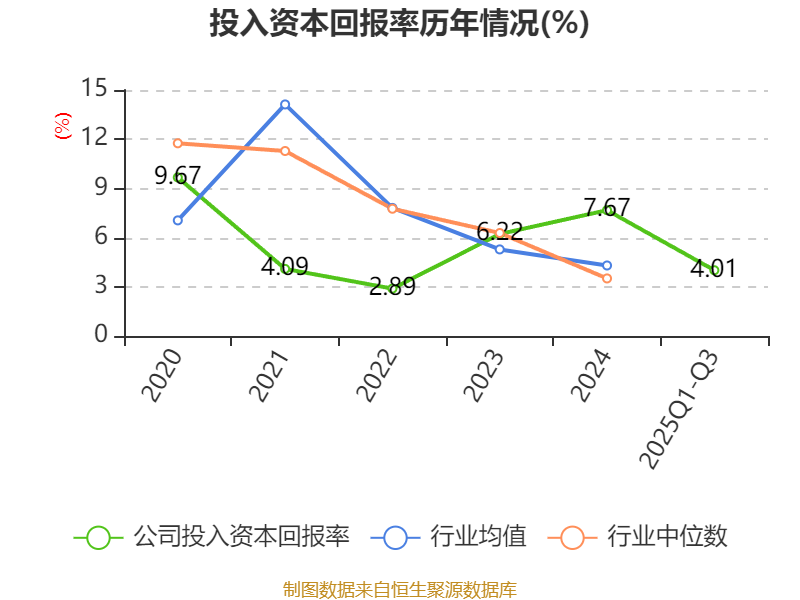 盈利能力方面, 2025年前三季度公司加权平均净资产收益率为4.01%,同比下降0.97个百分点。公司2025年前三季度投入资本回报率为4.01%,较上年同期下降0.6个百分点。