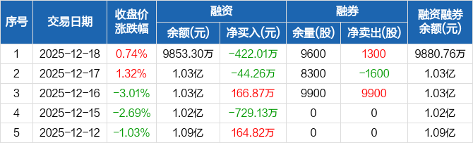 康平科技:融资净偿还422.01万元,融资余额9853.3万元(12-18)