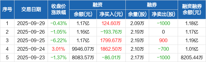 瑞丰新材:融资净买入124.6万元,融资余额1.17亿元(09-29)