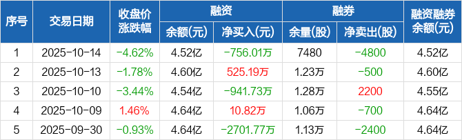 兆龙互连:融资净偿还756.01万元,融资余额4.52亿元(10-14)