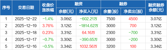 特发服务:融资净偿还602.21万元,融资余额3.06亿元(12-22)