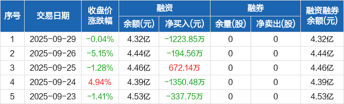 南山智尚:融资净偿还1223.85万元,融资余额4.32亿元(09-29)