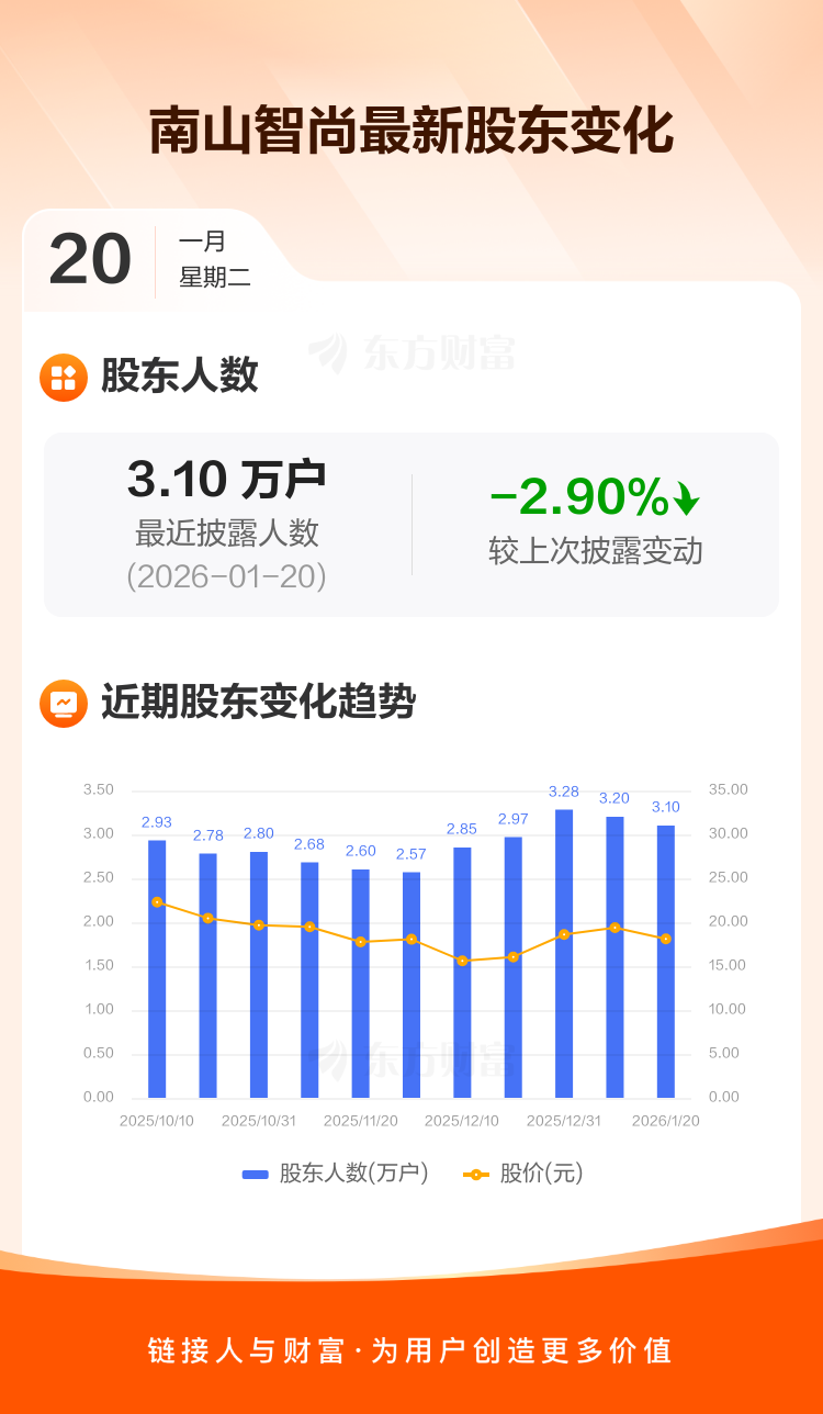 南山智尚:截至1月20日最新股东户数3.10万户,较上期减少2.90%