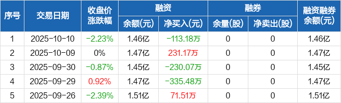 南凌科技:融资净偿还113.18万元,融资余额1.46亿元(10-10)