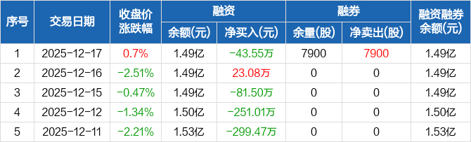 南凌科技:融资净偿还43.55万元,融资余额1.49亿元(12-17)
