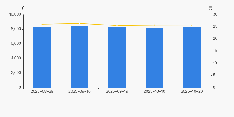 2025年8月29日至今,公司股东户数有所增长,区间涨幅为0.15%。2025年8月29日至2025年10月20日区间股价下降1.46%。