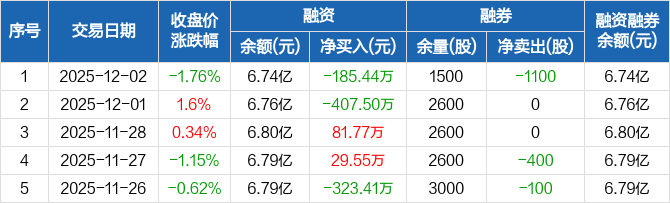 法本信息:融资净偿还185.44万元,融资余额6.74亿元(12-02)