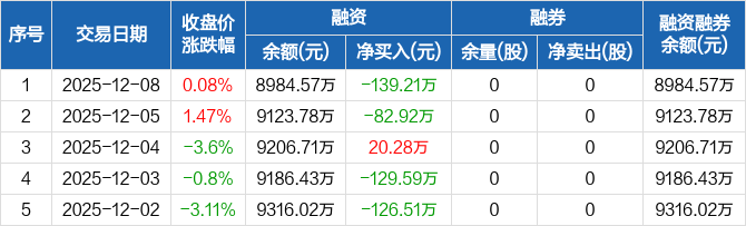 江天化学:融资净偿还139.21万元,融资余额8984.57万元(12-08)