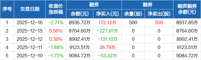 江天化学:融资净买入172.12万元,融资余额8936.72万元(12-16)