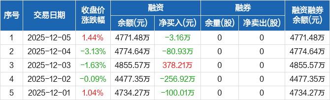 华骐环保:融资净偿还3.16万元,融资余额4771.48万元(12-05)