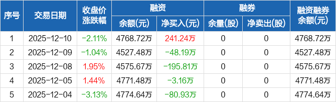 华骐环保:融资净买入241.24万元,融资余额4768.72万元(12-10)