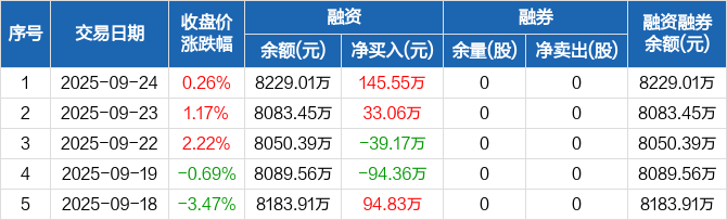 屹通新材:融资净买入145.55万元,融资余额8229.01万元(09-24)