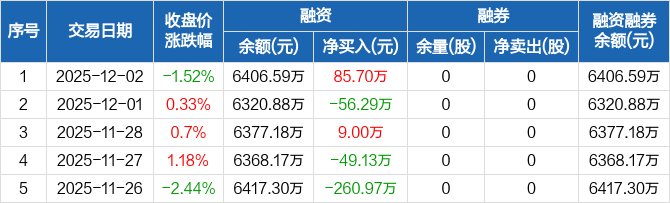 屹通新材:融资净买入85.7万元,融资余额6406.59万元(12-02)