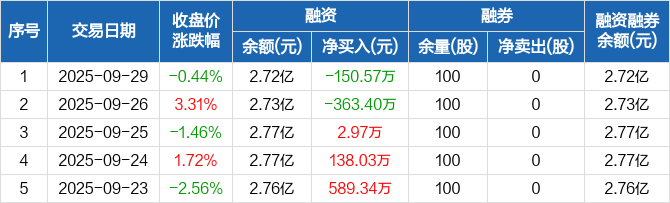 中辰股份:融资净偿还150.57万元,融资余额2.72亿元(09-29)