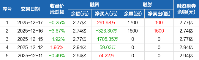 中辰股份:融资净买入291.98万元,融资余额2.77亿元(12-17)
