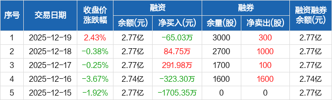 中辰股份:融资净偿还65.03万元,融资余额2.77亿元(12-19)