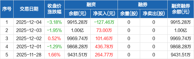 盈建科:融资净偿还127.46万元,融资余额9915.28万元(12-04)