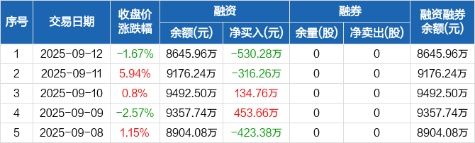 中英科技:融资净偿还530.28万元,融资余额8645.96万元(09-12)