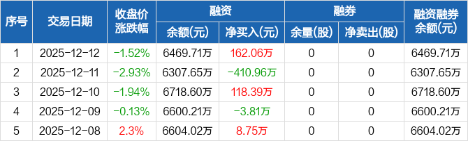 中英科技:融资净买入162.06万元,融资余额6469.71万元(12-12)