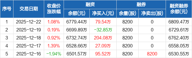 中英科技:融资净买入79.54万元,融资余额6779.44万元(12-22)